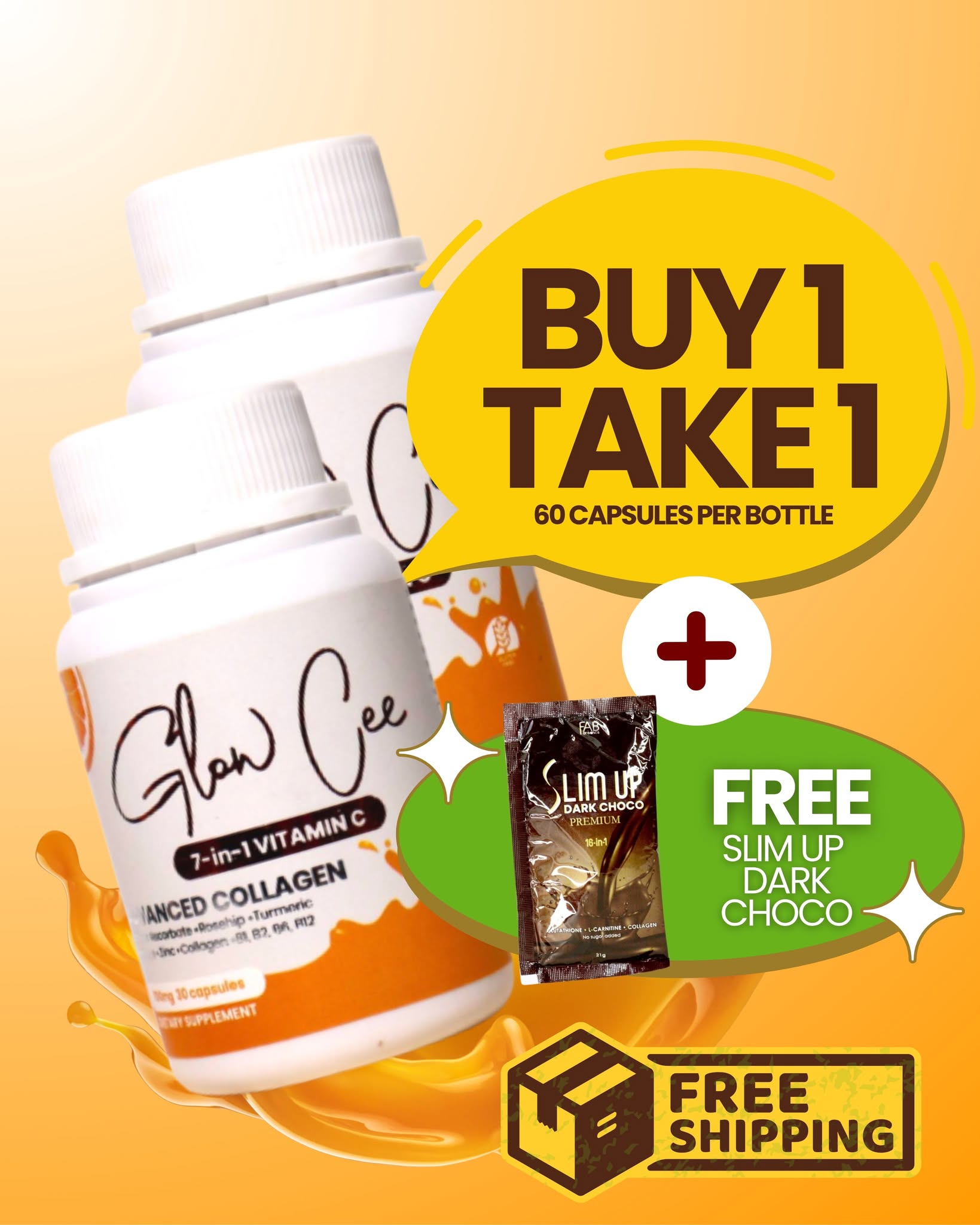 BUY 1 Slm Up (10 sachets), GET 1 Glow Cee VitC Collagen (60 capsules)